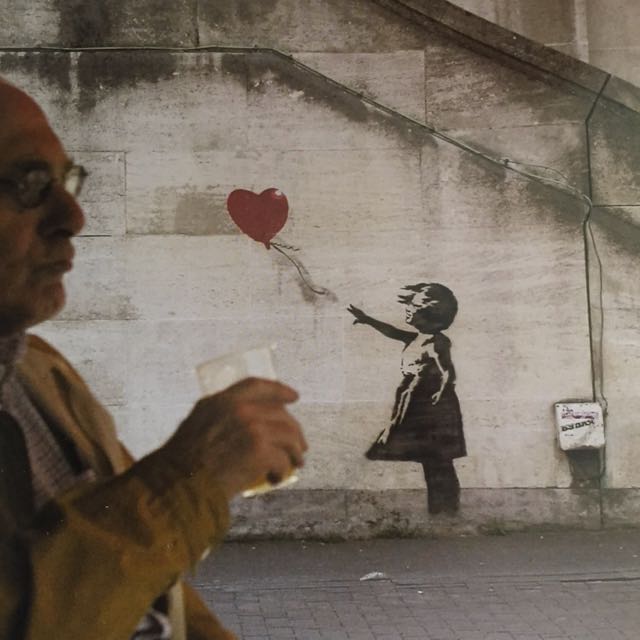 2004 – SA – UK – London – Southbank – Girl w red balloon – Wall and piece p78