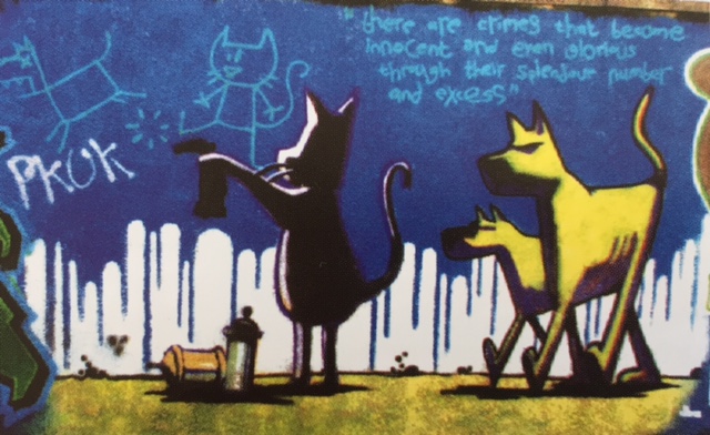 1996 – SA – UK – Bristol – Early Banksy – Dog painting cats – HSH p101