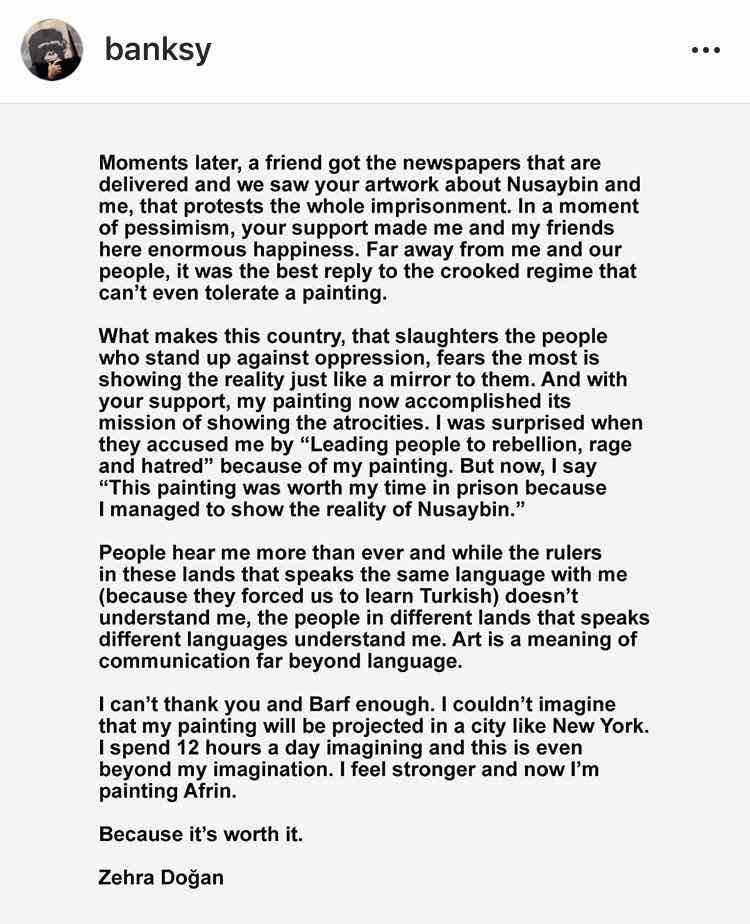 20180727 – Banksy Instagram – Letter from Zehra Dogan – English translation 2:2