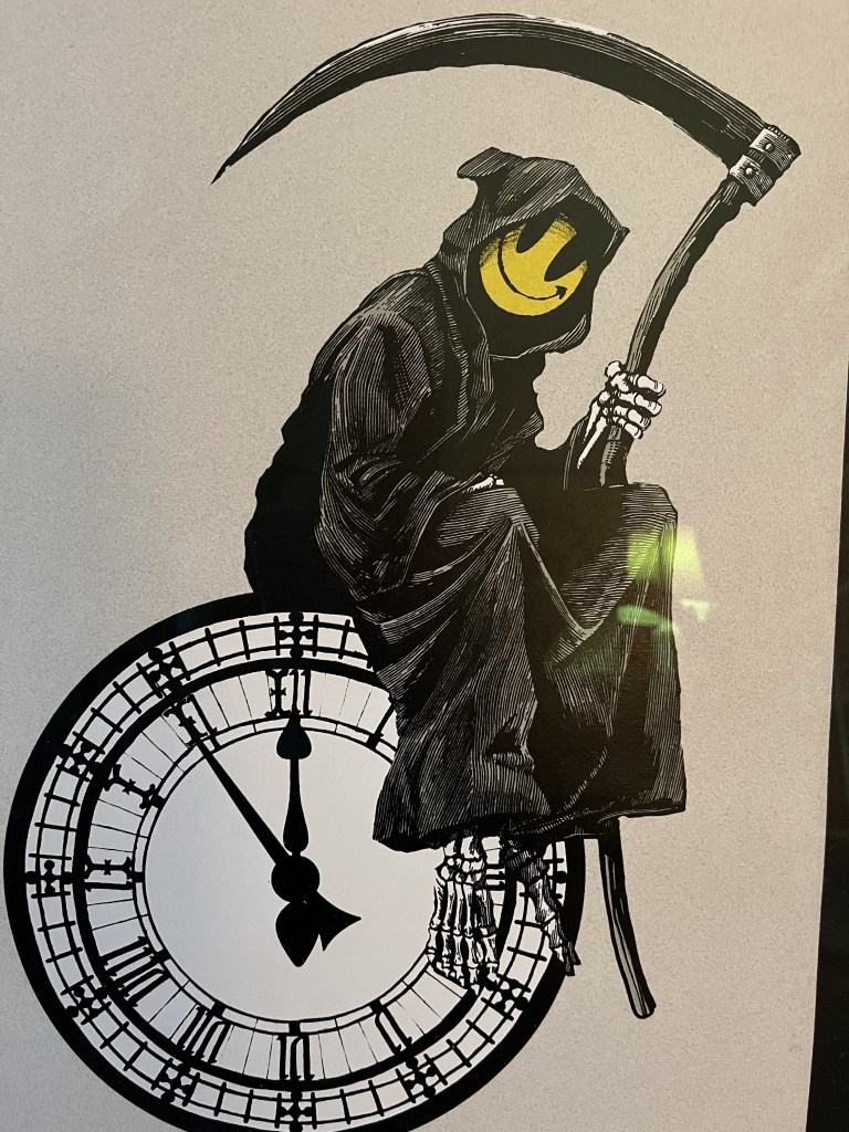 - Grim Reaper: Banksy constantly reminds us that this guy will come knocking on our shoulders sooner or later.