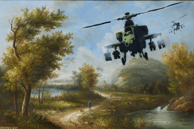 - Helicopters. More than 10 helicopters in the Banksy catalogue.