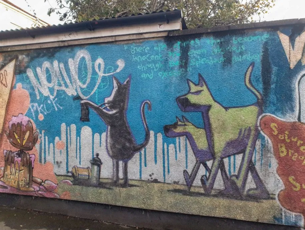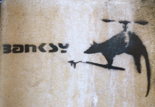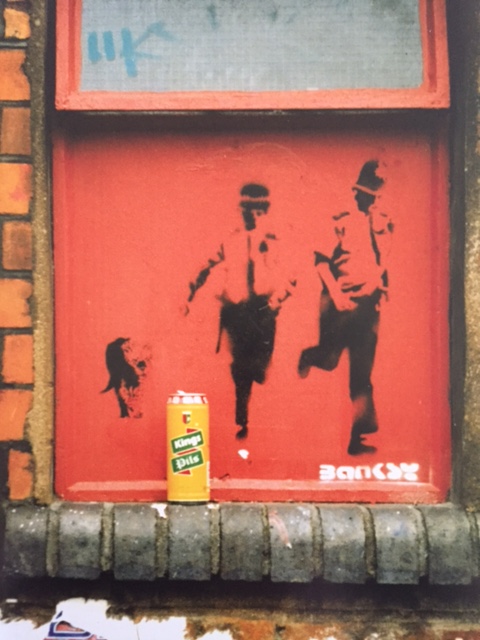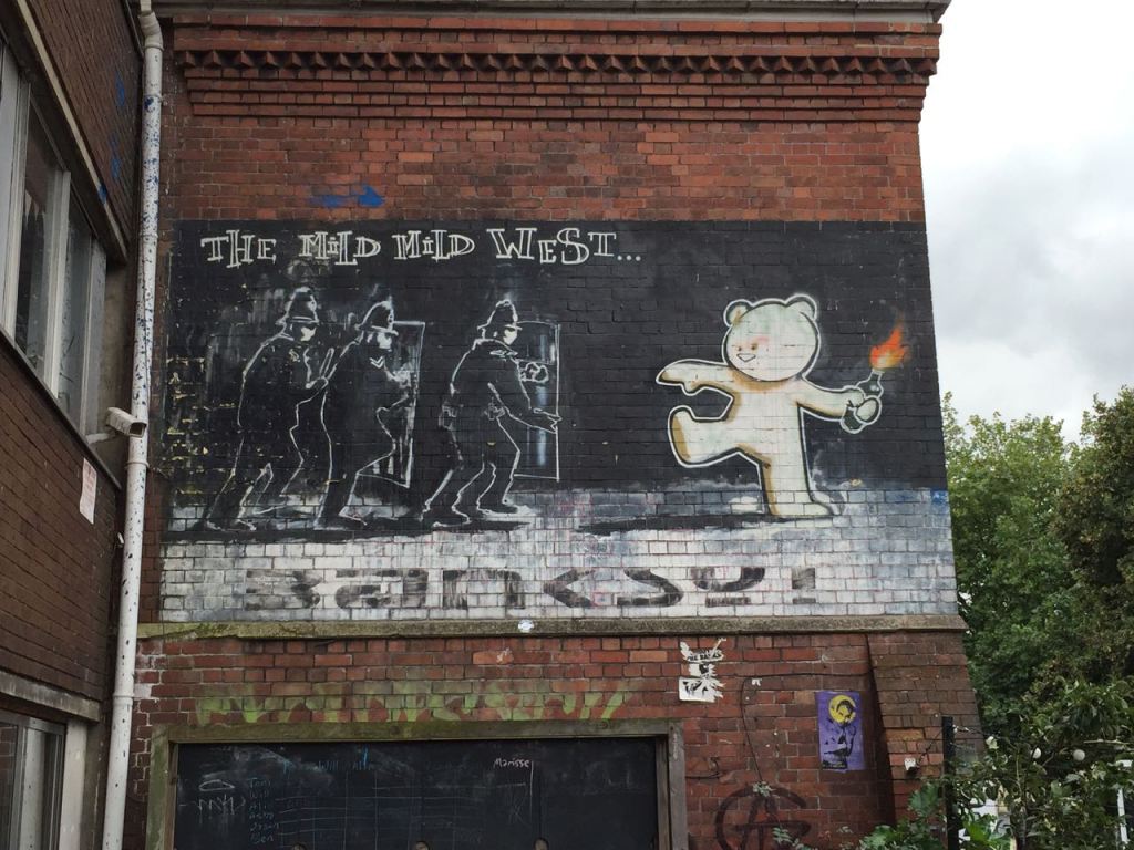 The Mild Mild West is one of Banksy’s most iconic freehand works. Banksy painted it in broad daylight on a building in Stoke Croft, Bristol. It’s a response to several incidents in the late 90s with the Bristol police breaking up rave parties in full riot gear.