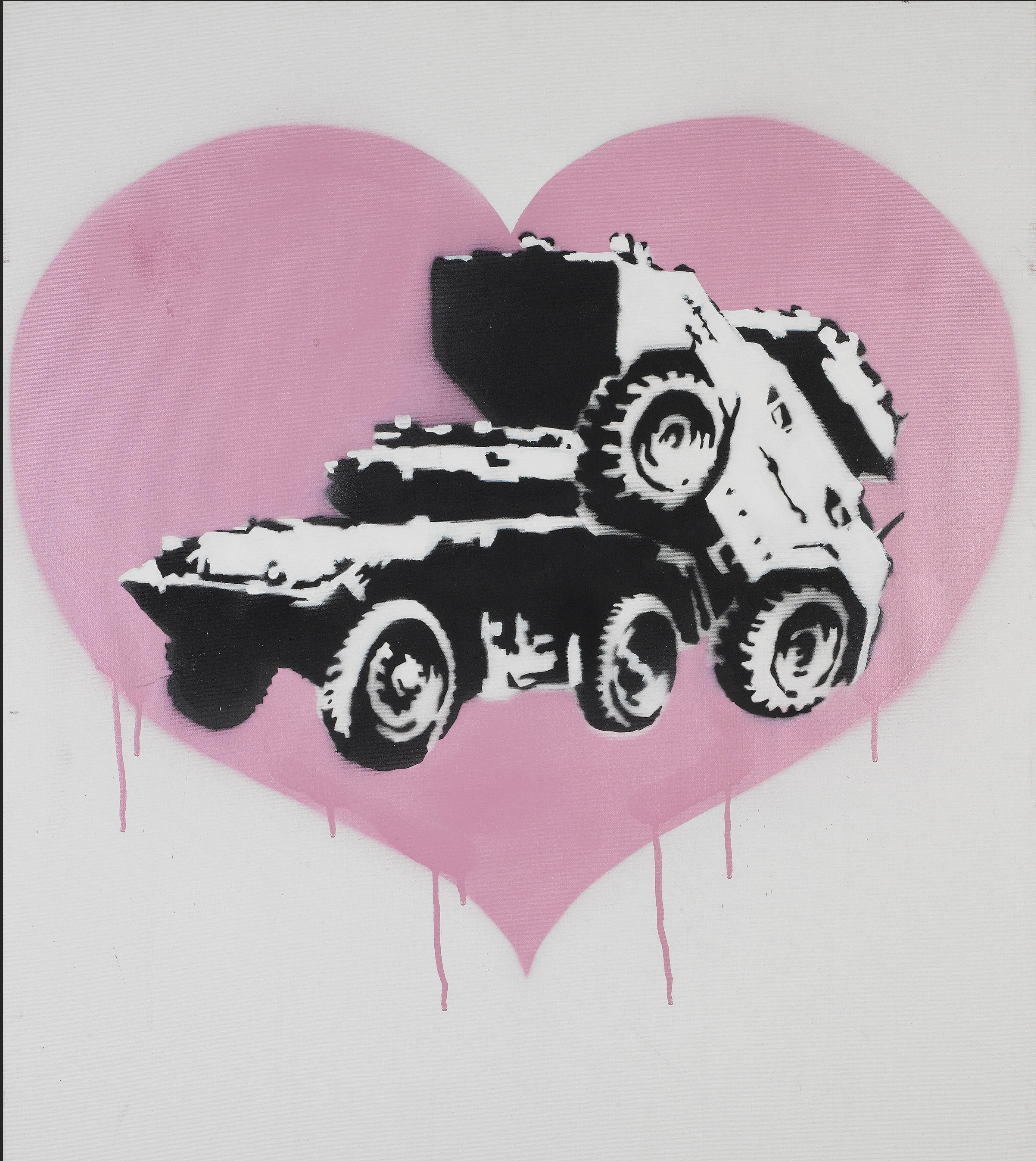 In the first years of the decade, besides the UK and US, Banksy went to Barcelona, Berlin, Vienna, Bergen, Copenhagen, Tokyo, Paris, and Palestine, where he painted the first stencilled version of the iconic Love is in the Air behind a gas station in Bethlehem.