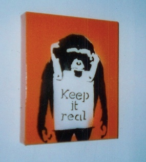 It was a selling exhibition, and Banksy sold quite a few multiple canvases, most of them in an edition of 5 and dated LA 2002 on the stretcher:
