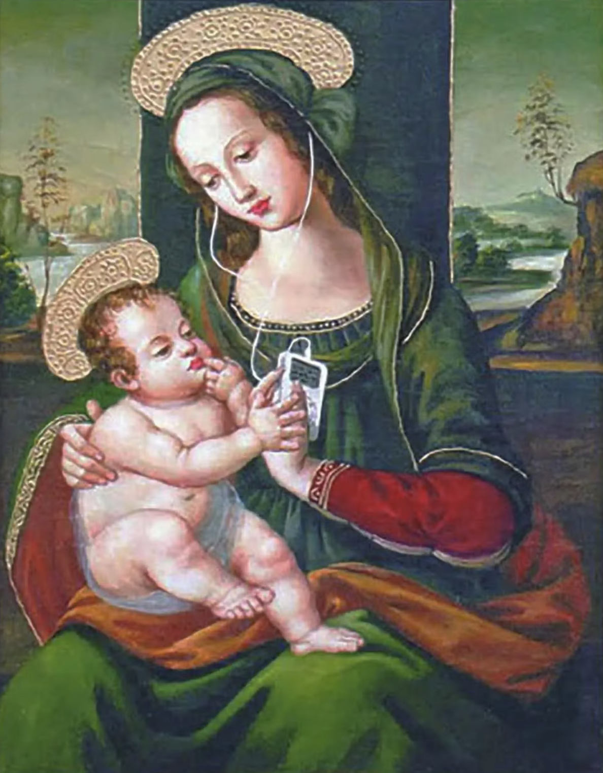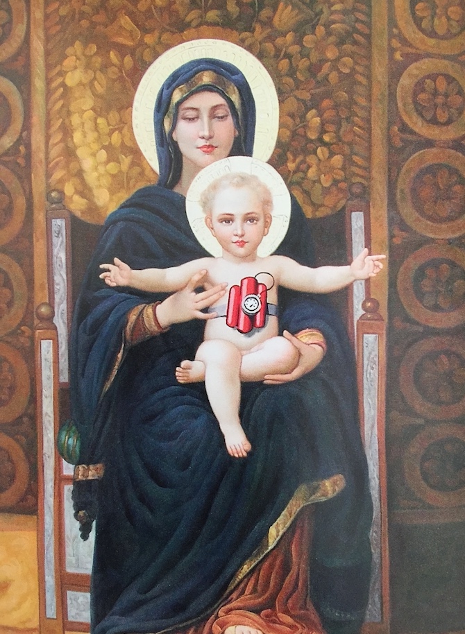 Of particular interest were the modified oil paintings, some of which reappeared the following year at the Crude Oils exhibition. Here, three examples in clockwise order: Silent Night, Congestion Charging, and Countryside CCTV.