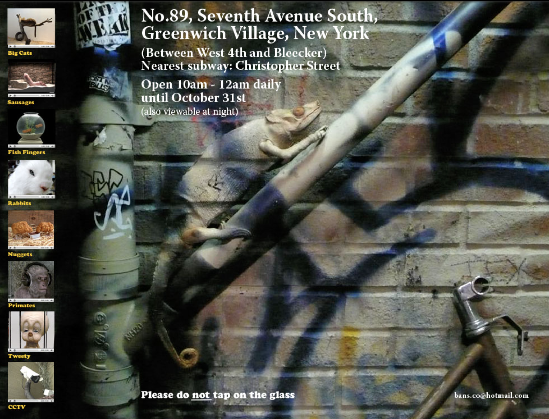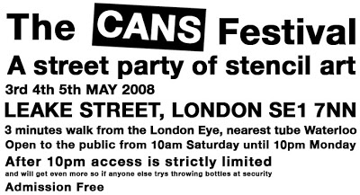 Banksy organised The Cans Festival London over the weekend of May 3–5, 2008. The event took place at Leake Street, a tunnel beneath London Waterloo station formerly used by Eurostar. Team Banksy invited approximately 40 street artists from around the world to participate in the exhibition.