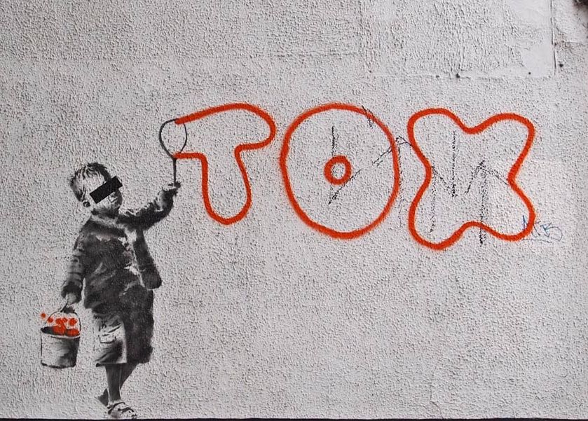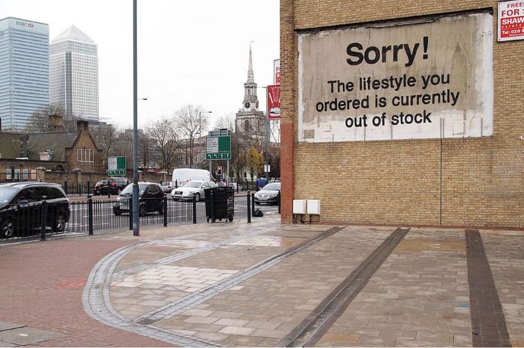 On the same note, in October 2011, Banksy showed his support for the Occupy London movement by installing a new piece at St. Paul’s Cathedral. The sculpture consists of a modified Monopoly board with the hotel covered in graffiti, including a TOX tag and an unshaven Monopoly mascot begging for change with his top hat.