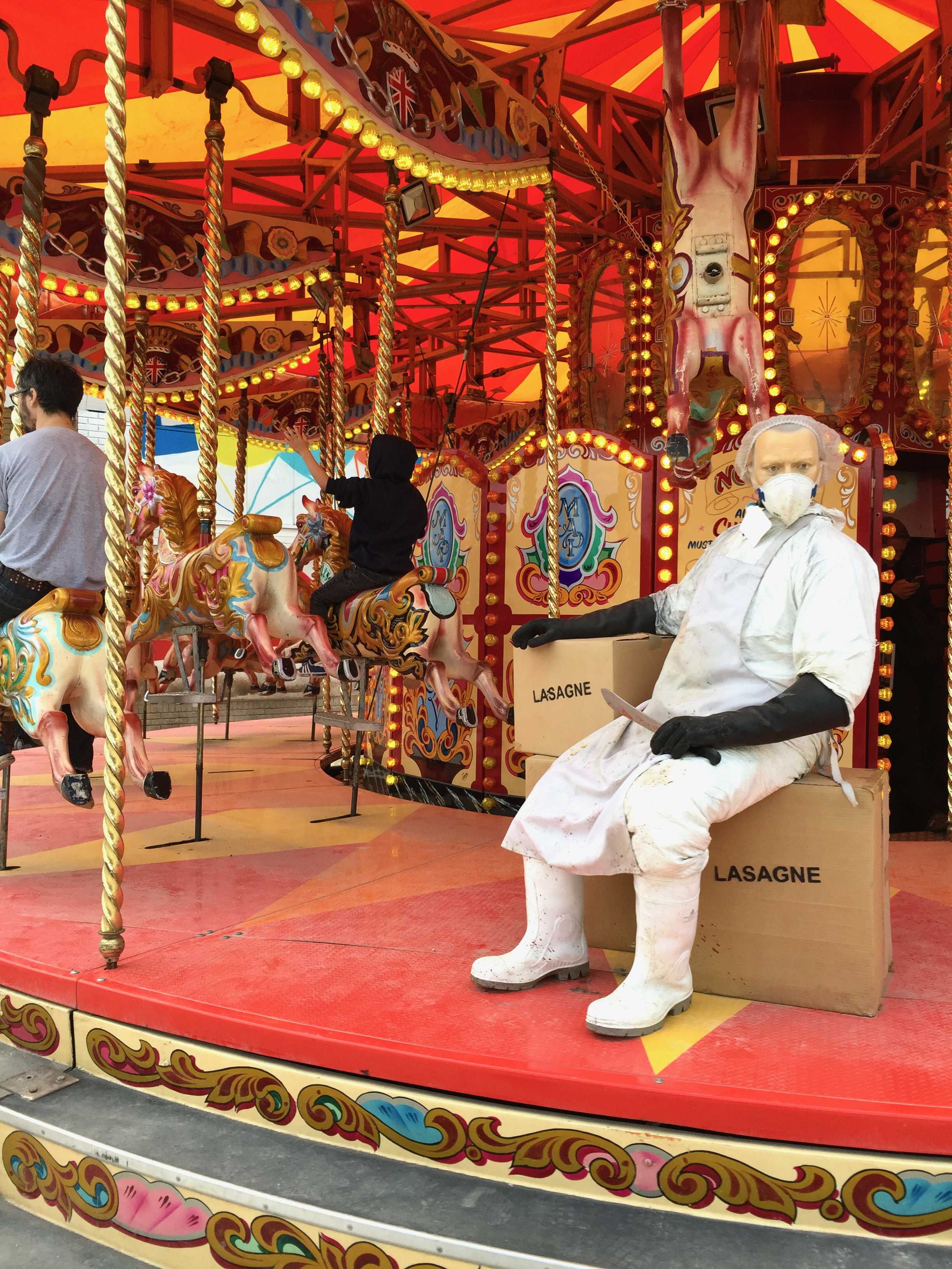 Banksy does better with a figure of Death riding a dodgem. This would be a lot of fun if you could go on the dodgems and try to dodge death. Sadly you just have to watch. It elicits a half laugh.