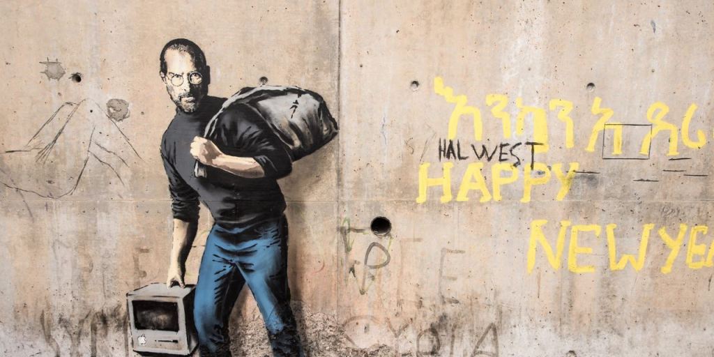 In February 2015, Banksy published a 2-minute video titled “Make this the year YOU discover a new destination” about his trip to the Gaza Strip. During the visit to Gaza in early 2015, Banksy painted at least four exquisite works, among them a weeping Niobe, and a kitten on the remains of a house destroyed by an Israeli air strike. He also did a text-based piece, a quote from Christian philosopher Paolo Freire, of Brazilian origin: “If we wash our hands of the conflict between the powerful and the powerless, we side with the powerful; we don’t remain neutral. ”