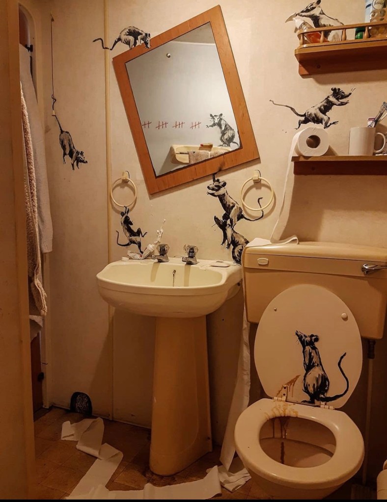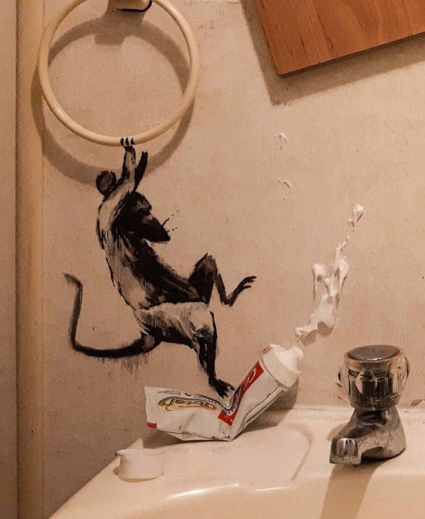 Banksy revisited his roots in Barton Hill for Valentine’s Day. And the girl with the red balloon is also back, but this time holding a slingshot in her hand.