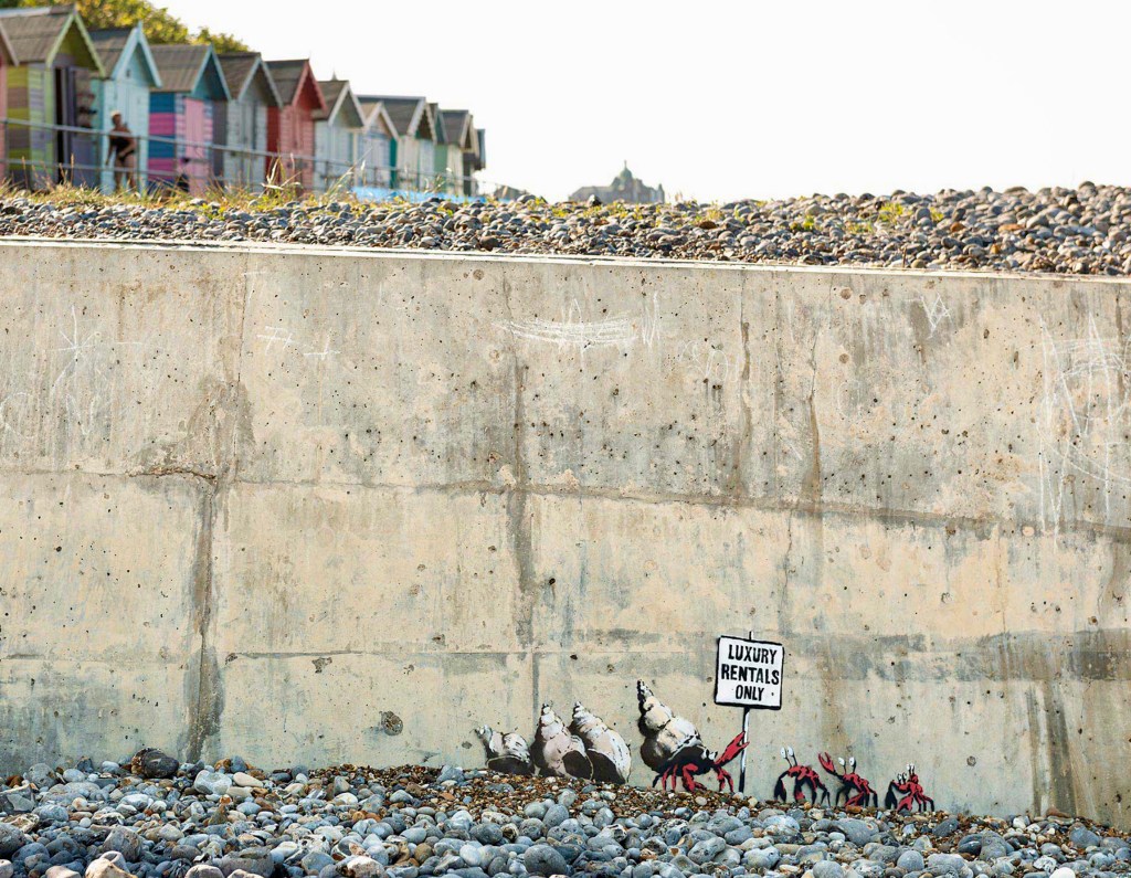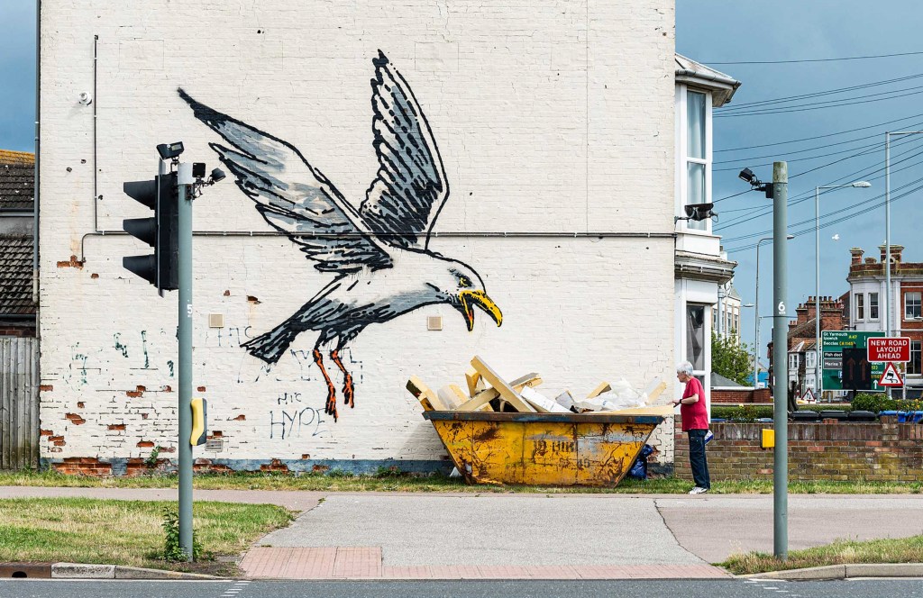 After a five-month recess, Banksy is back at it with ten brilliant pieces in Great Yarmouth and Lowestoft, two adjacent towns on the eastern coast not far from Norwich. The pieces went up around 6 August but were confirmed a week later, on 13 August.