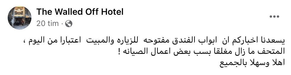 It has been closed for 20 months, but today The Walled Off Hotel posted a hopeful message on Facebook: