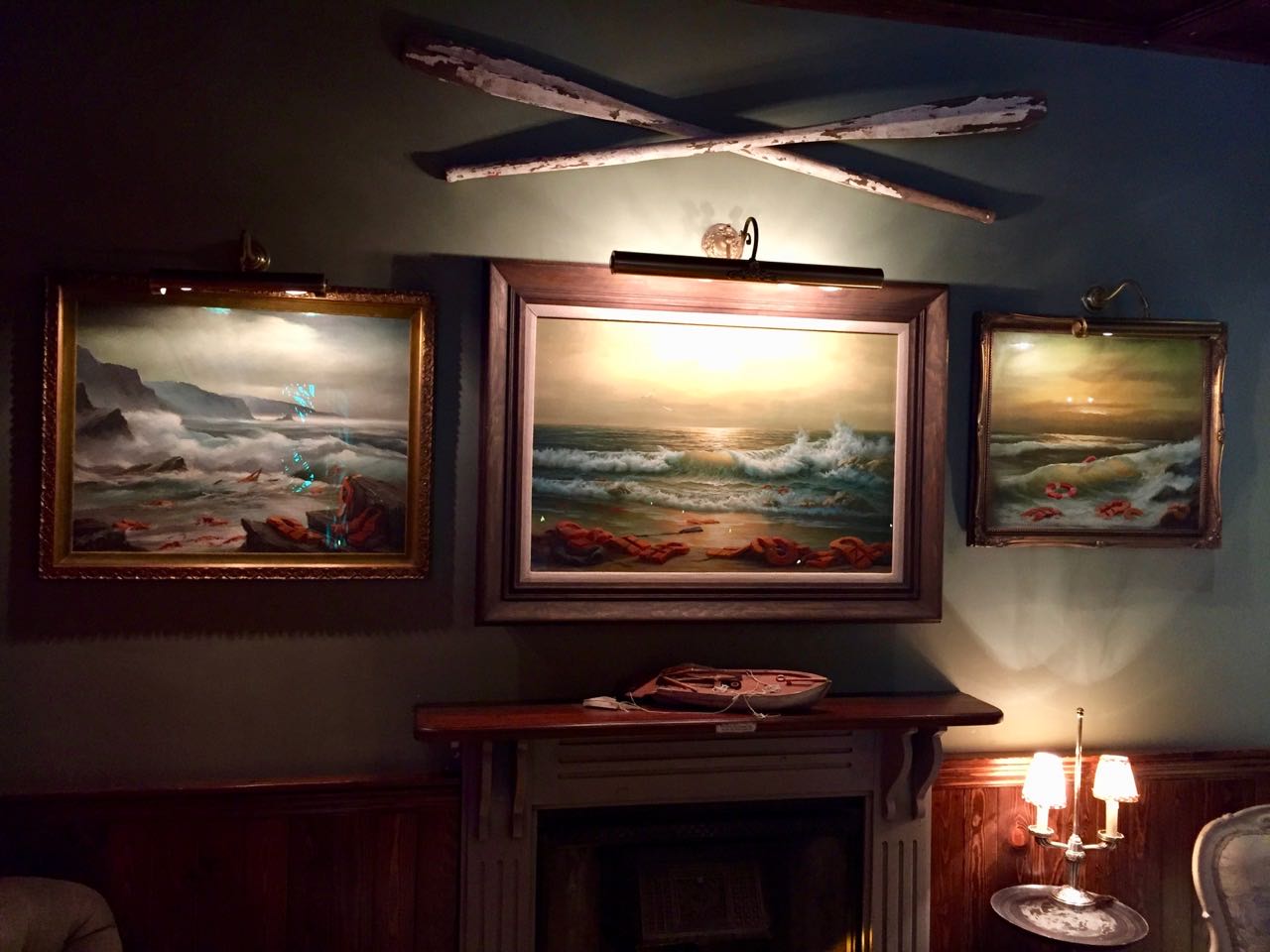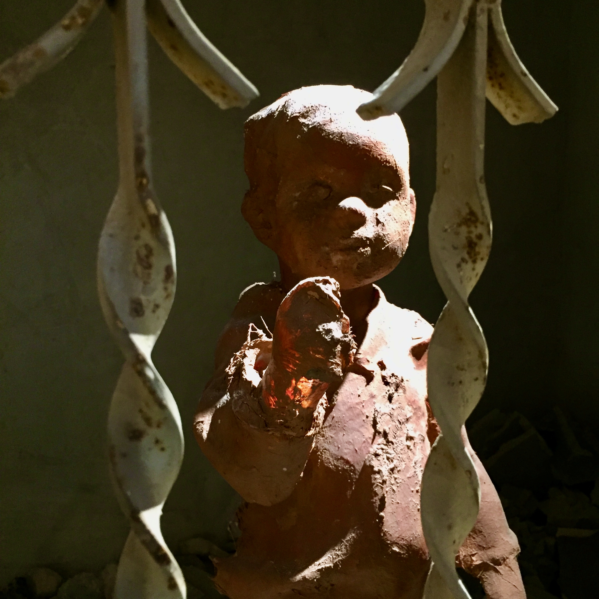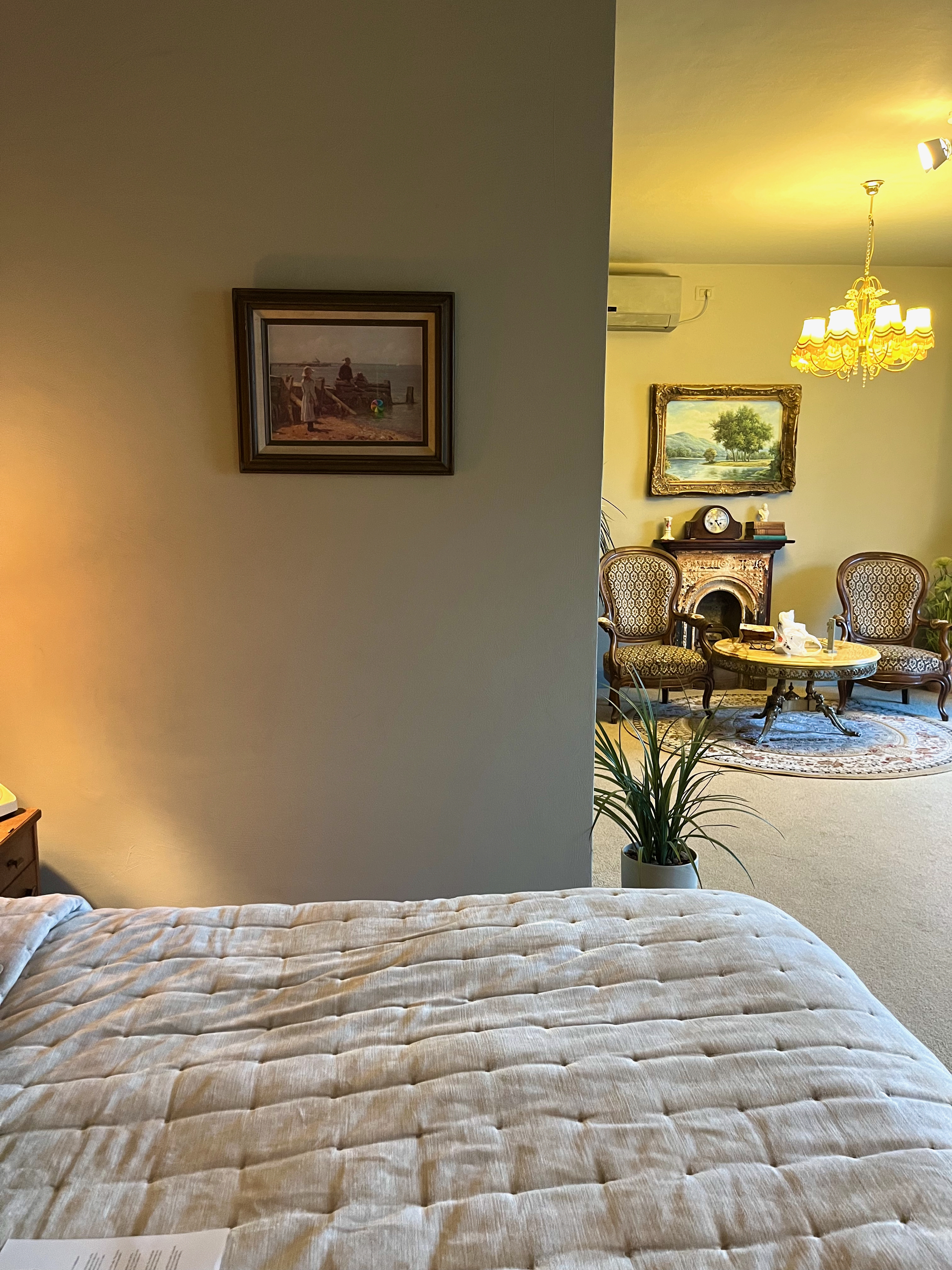 The hotel, a former pottery workshop, has a dystopian colonial theme, a nod to Britain’s role in the region’s history, the reception and tea-room a disconcerting take on a gentlemen’s club where a self-playing piano provides an eerie soundtrack. The fire flickering in the grate glows under a pile of concrete rubble, like a blaze at a bomb site, a classical bust in a niche is wreathed in clouds of gas snaking out of a tear gas canister and, in traditional seascapes, the beaches are littered with life-jackets discarded by refugees.