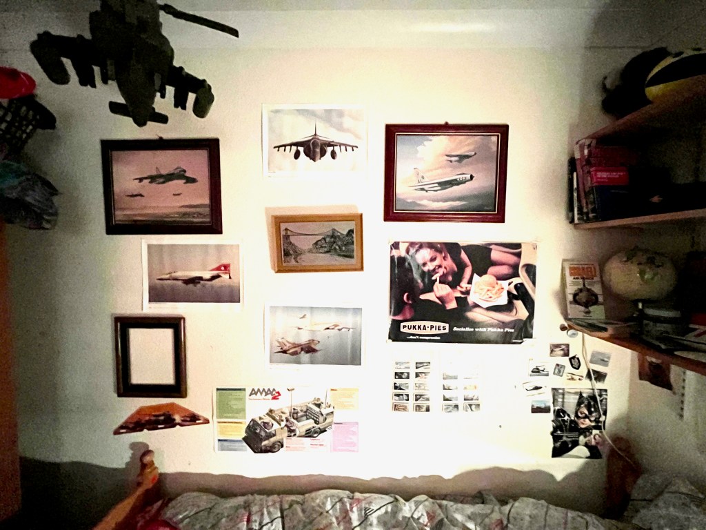 Photos are only permitted in a space after the gift shop, in what is presented as young Banksy’s boy-room: