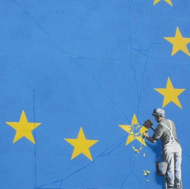 Banksy’s take on Brexit comes at a contentious time for European politics: the UK is currently undergoing a general election that will determine the relationship with or without the EU. At the same time, France is deciding on its European future on the other side of the Channel, only 80 km away. Confirmed by Banksy’s Instagram account on 7 May 2017.